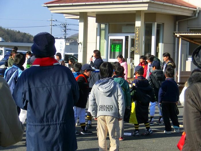 新山小学校の先生と生徒さん指導による準備運動を行う。
