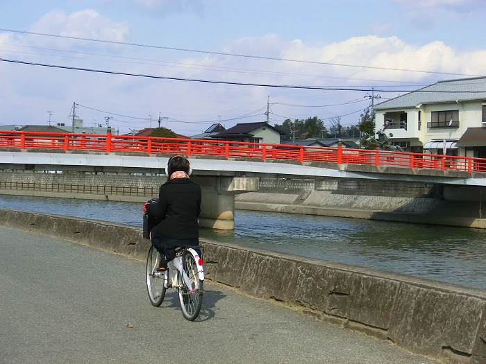 昔・海峡、今・倉敷川。藤戸側から見る盛綱橋。