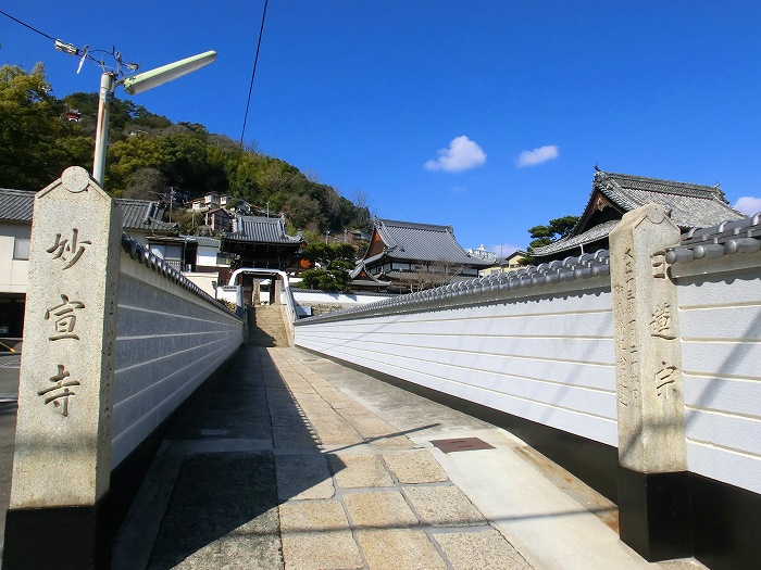 妙宣寺の前を行く。