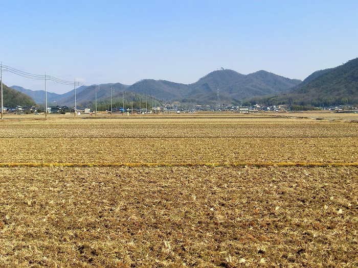 善楽寺から見る甲弩神社の山と、阿部山系。