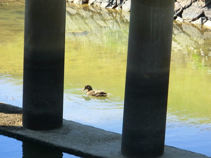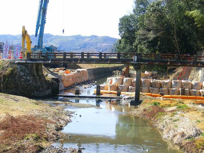 楠淵橋の上流側では工事中、堰を作っているようだ。