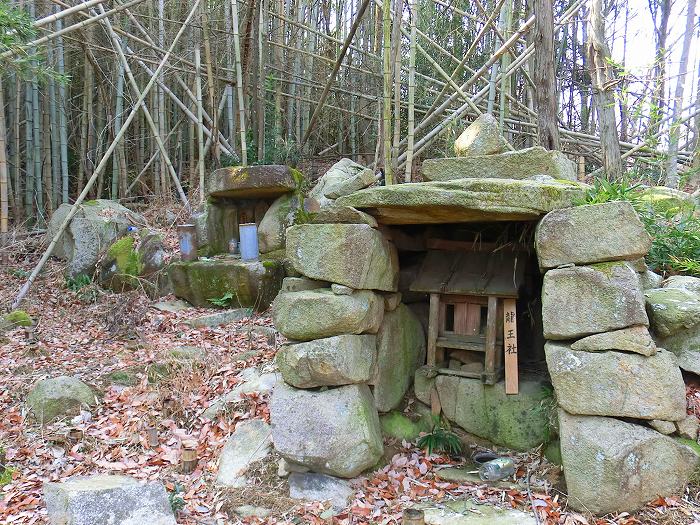 井立池の脇にある井立のネズの木、そして「賽の神」。