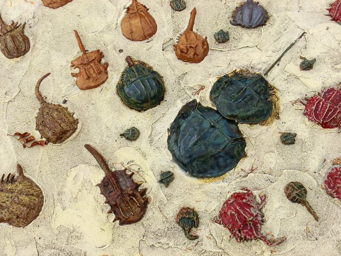 陸上競技場の前には「よみがえれカブトガニ」。