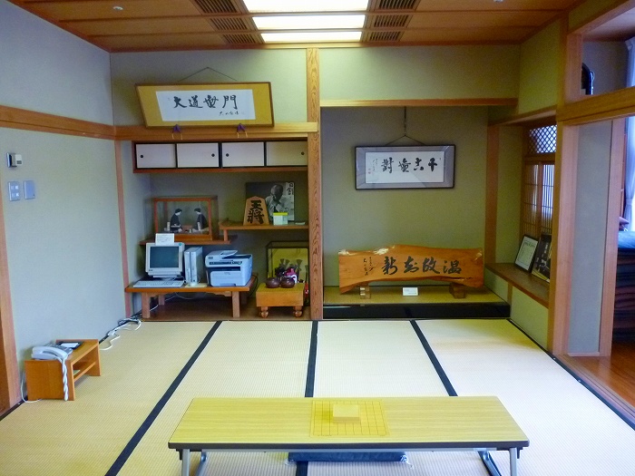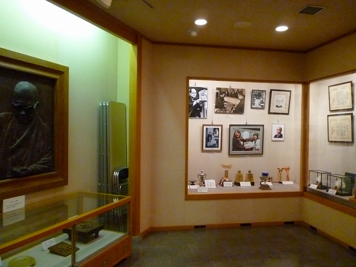 このように床の間には名人の写真や表彰状・トロフィーがあり、