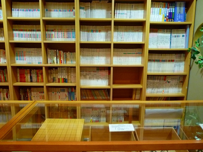 畳の間から出るとすべてが将棋本の本棚がある。