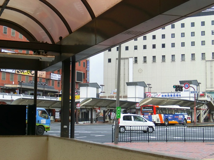 倉敷駅前。今年は倉敷商業が春の甲子園に出場するのだな、横幕がある。