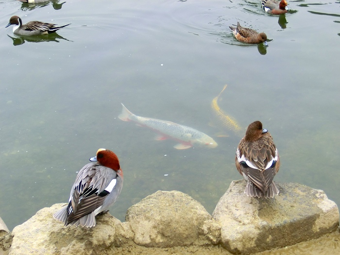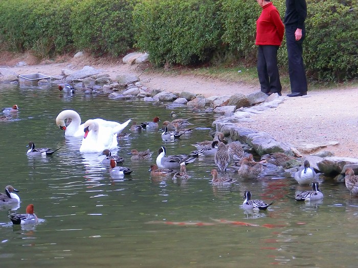 白鳥・アヒル・鴨、それに鯉。