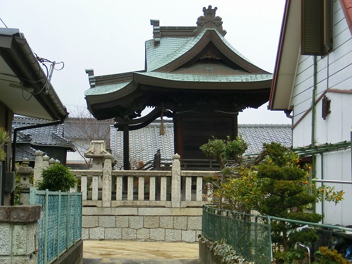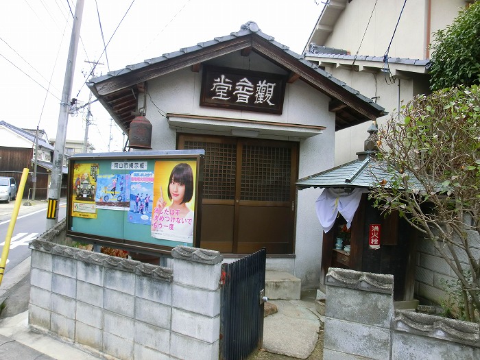 庭瀬の辻にある観音堂は半鐘付き、隣には霊場もある。