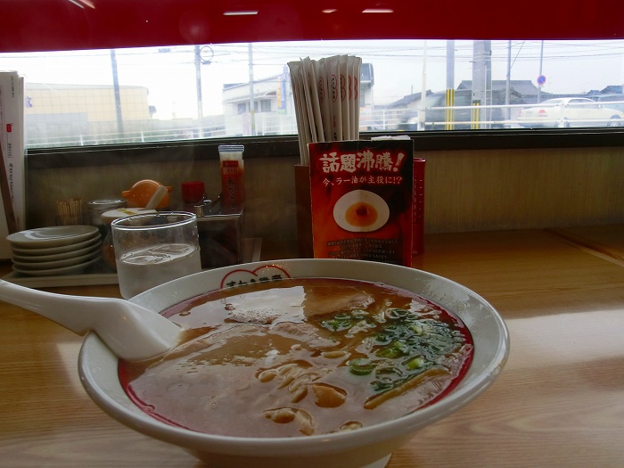 すわき後楽ソバを食べながら、前の道(旧国道2号線)を眺めていた。