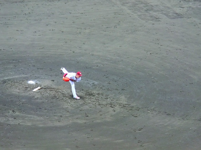 今日は塩見以上の安定感があった。球速は144〜145km出ていた。