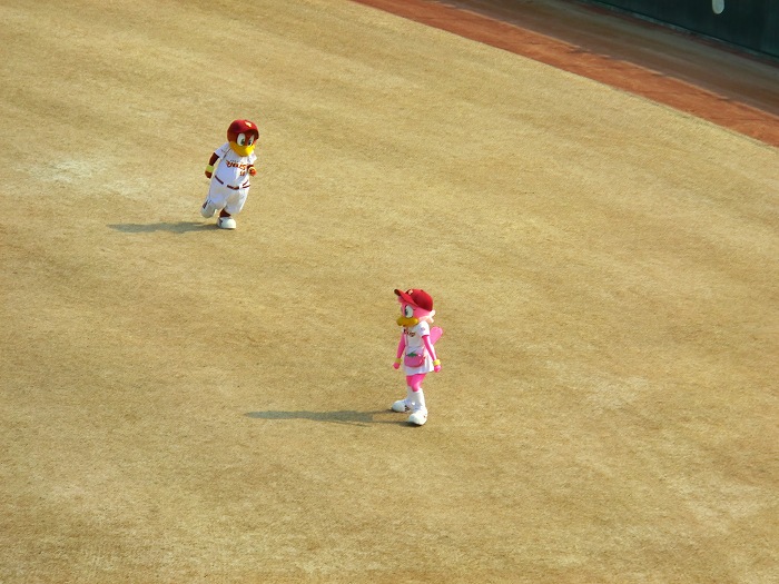 その間、外野の方ではマスコットキャラクターがファンサービス。