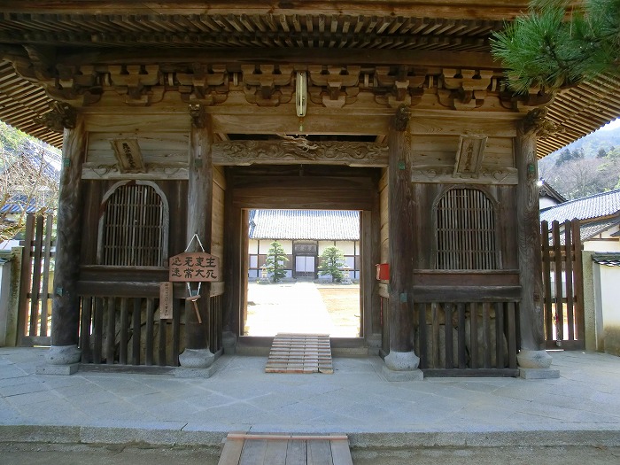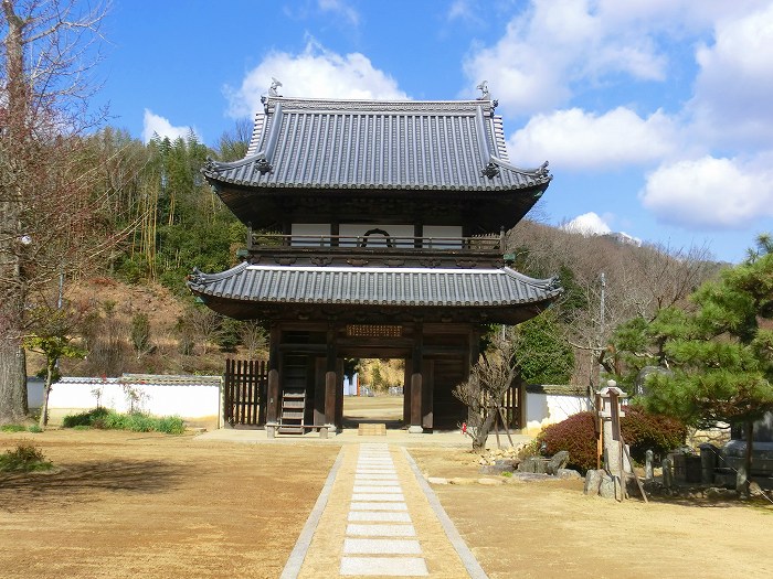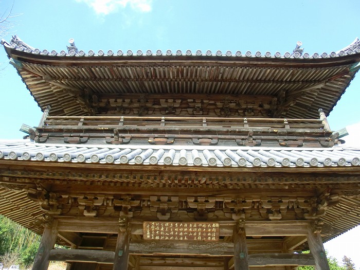 下から見上げる山門。昨年、国の文化財に指定されたそうだ。