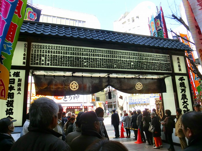 場所入りを見物する相撲ファン。
