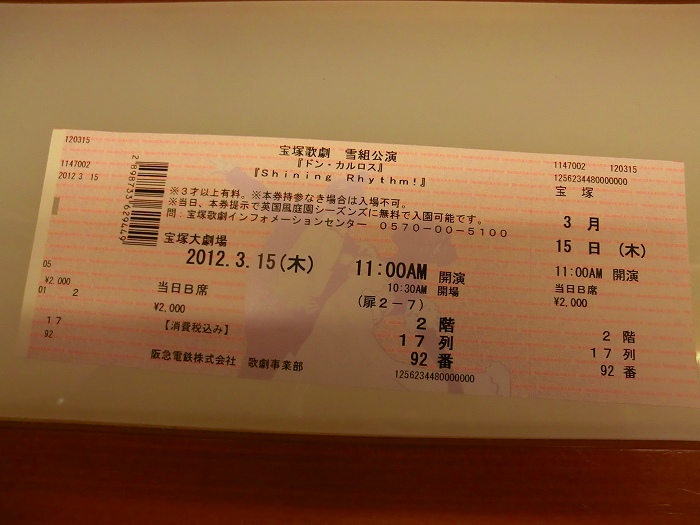 兵庫県宝塚市 宝塚大劇場 公演時間11:00〜14:05