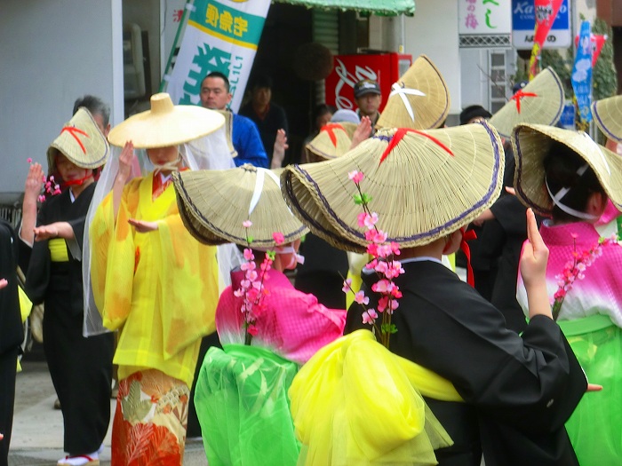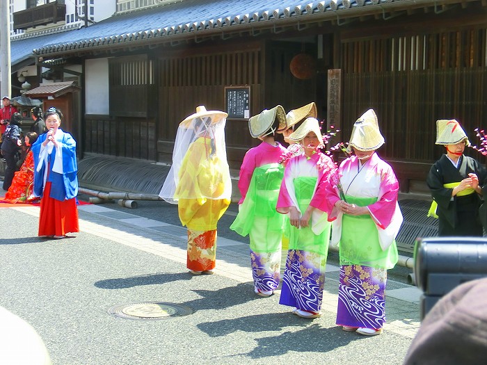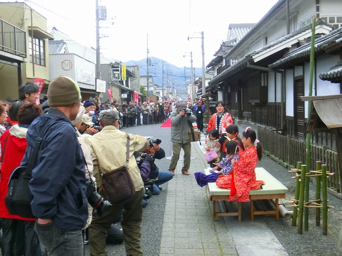 本陣前は舞う人を囲んで見物人とカメラマンで混雑した(本陣以外は閑散)。