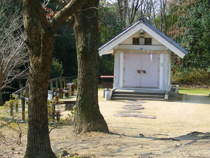 これは楯築神社。すぐ隣に大きな給水塔が建っている。