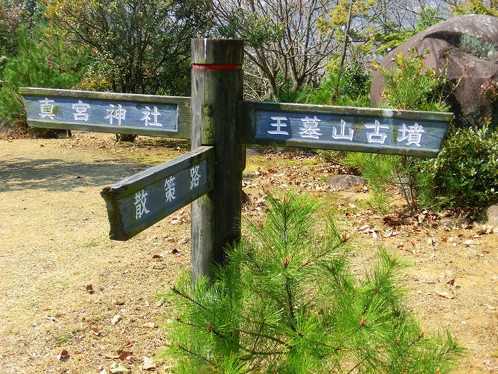 公民館とグランドがあり、そこが王墓山の入り口。