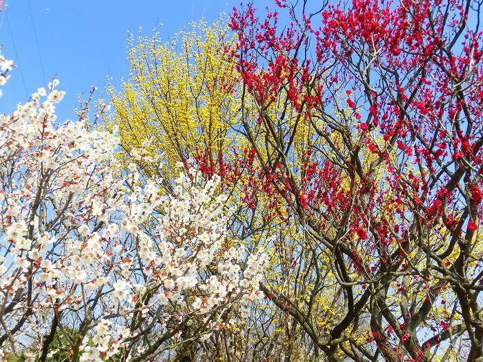 150本の梅の木は、それぞれ違うような感じで、それでいて梅園内の調和ができている。