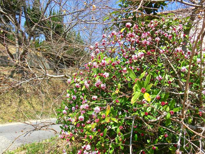 今立の八幡さんの参道脇に咲く沈丁花。