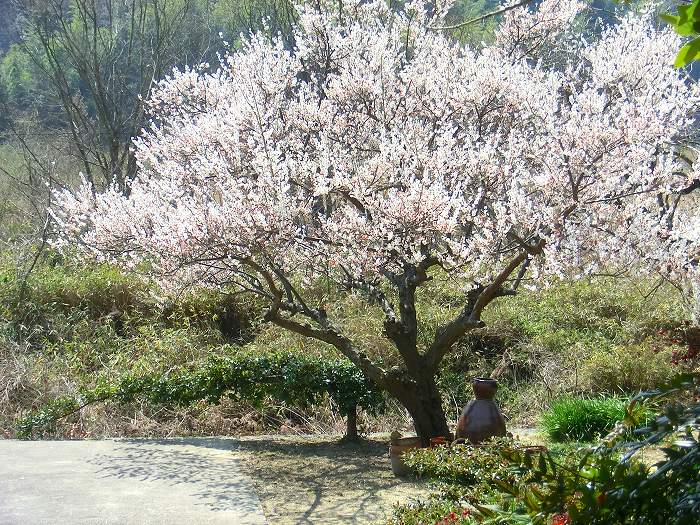 病院近くの民家前に咲く梅。