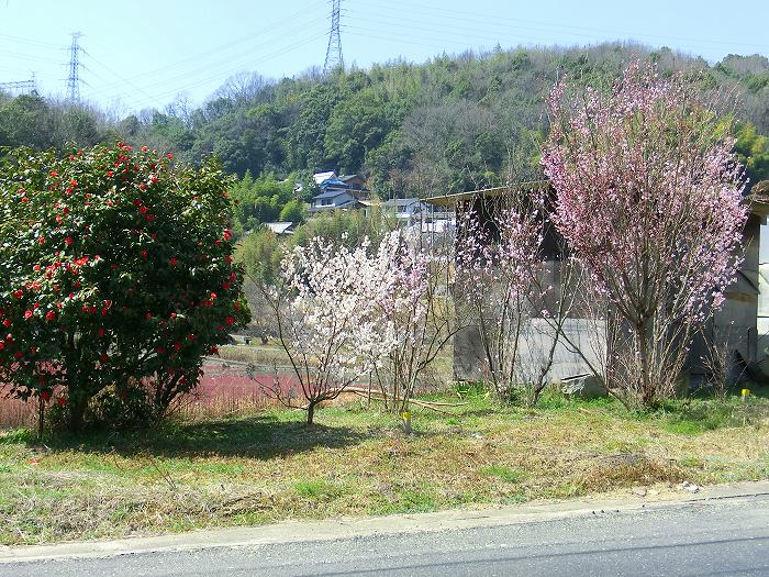 県道286号線(今井小前から笠岡美星線に出る、細い狭い県道)に咲く紅梅。