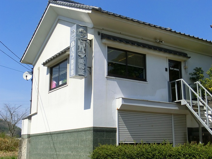 白壁の倉庫と間違ってしまいそうな美容院。
