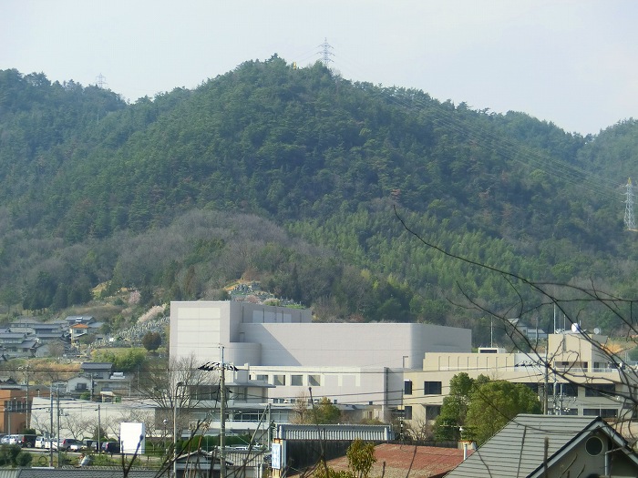 国道2号線から見る里庄図書館やJA岡山西の里庄支所。