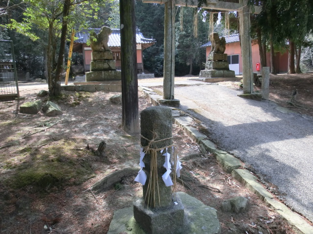 参道脇の五角形の「地神」、既に石が風化している。
