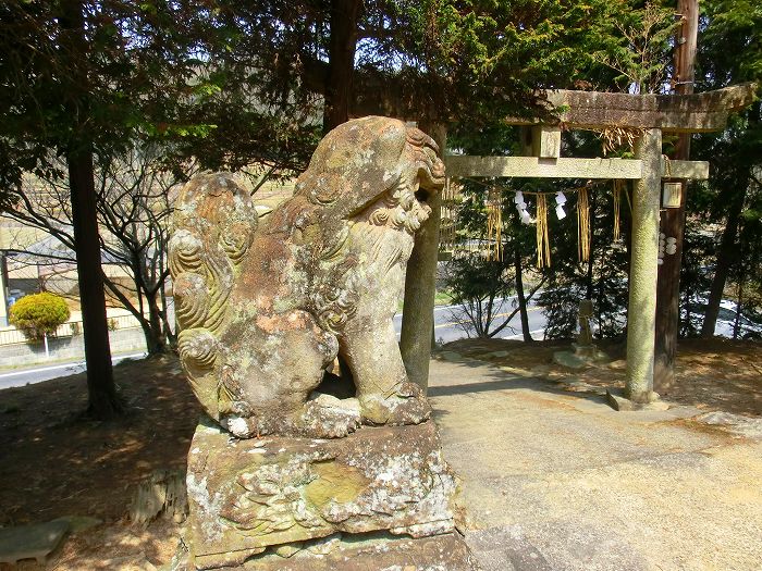 風化といえば狛犬も、既に石が剥げている。