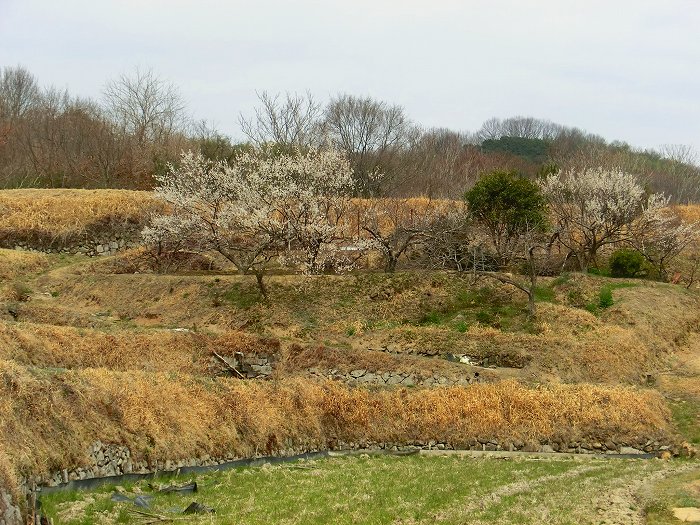 上長迫の山畑の梅。山の上は井原市との境。
