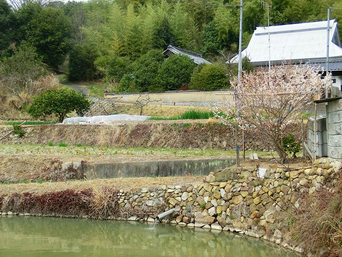 ため池のほとりに何気なく咲く梅。これもいい。