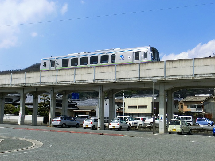 「子守唄の里高屋駅」から神辺に向かって一両車両の井原線が発車した。
